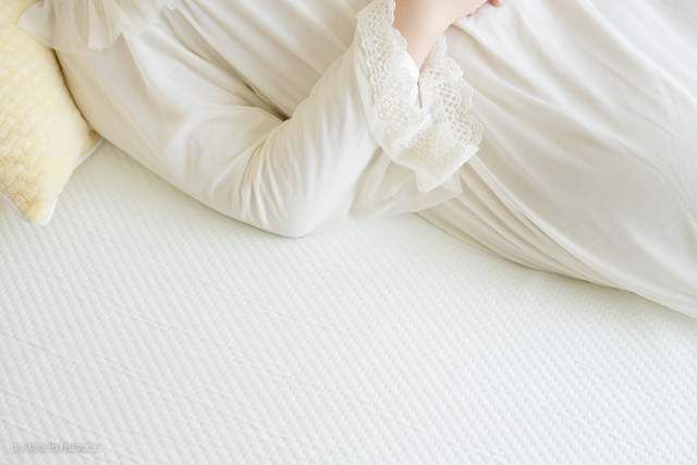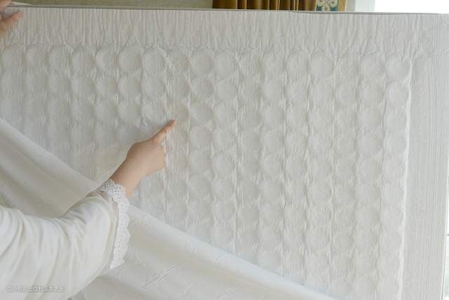 前面说过这款床垫的面层是天丝纤维材质,触感丝滑,细看纯白的表面还设计了凹凸的点状花纹,帮助床垫更好的透气。
