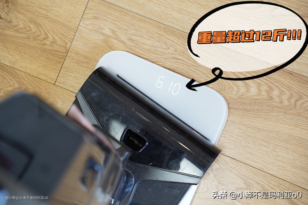 ▼不过因为净水箱和污水箱依然安置在机身上,装满水后整台机器的重量达到了6公斤,日常使用时,机身的重量由刷头和手臂分担,单手握持时会有明显的坠手感,虽然谈不上很累手,但推拉过程中,依然需要手臂不断施力去对抗机身带来的拖拽感,称不上完全放松手臂。