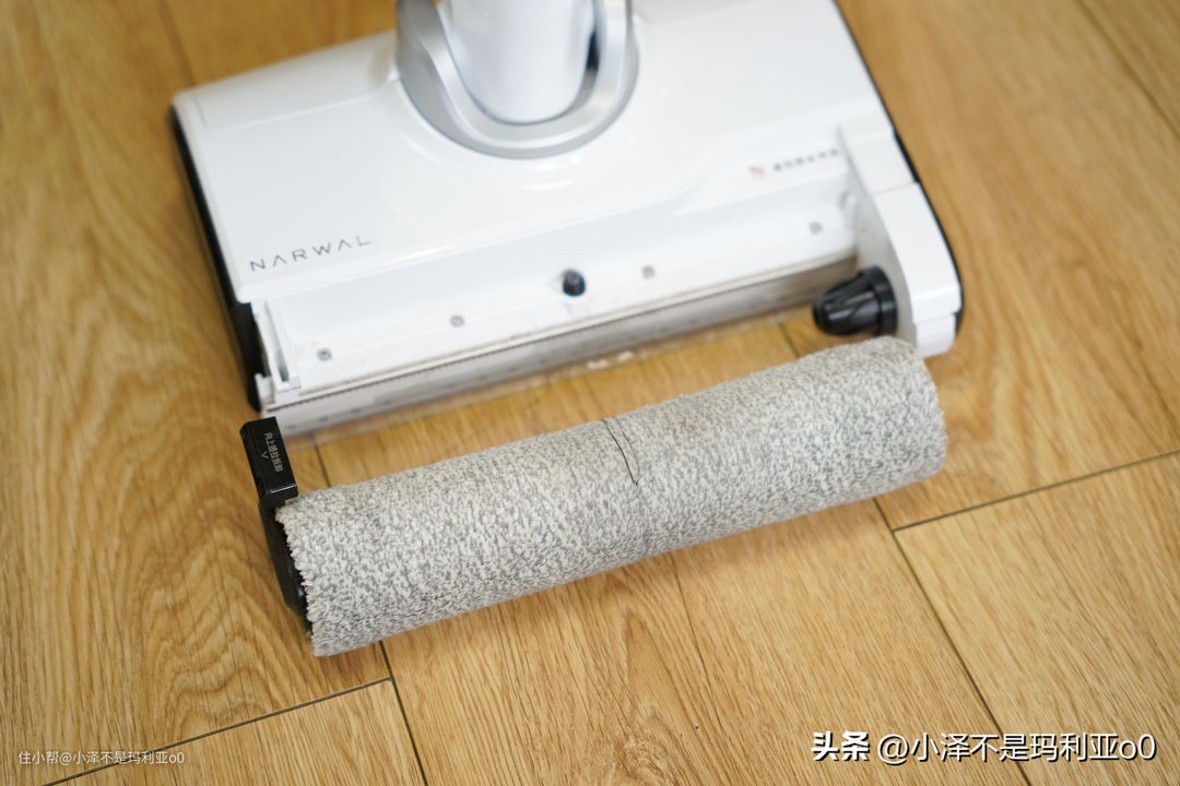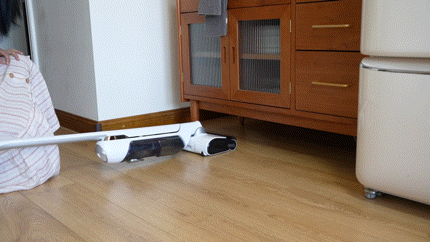 ▼使用过程中能够感受到整个机身都特别轻盈,仅用小拇指就能控制机身前后移动,虽然没有电动助力滚轮,单手使用时依然感觉到十分轻松,由于手臂不用承担机身重量,全程就是被刷头带着走,我用它拖遍全屋也不会觉得累手。