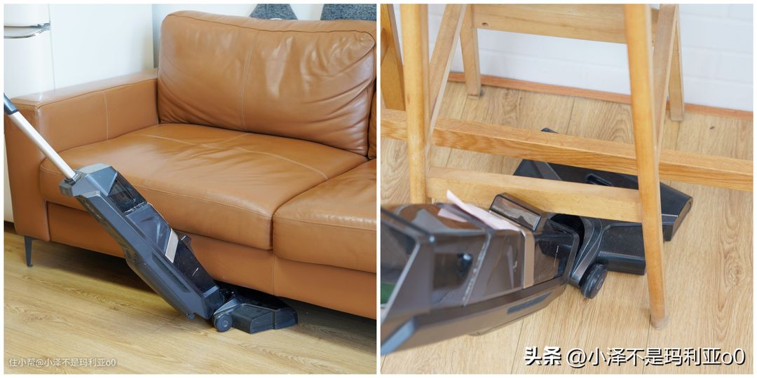 ▼我买洗地机其实就是为了摆脱传统拖把,结果买来后发现其实根本做不到。我家的喵主子平时是个缝就喜欢钻,因此我在用洗地机做完一遍全屋清洁后,床底,沙发底,餐边柜这些家具底下依然还得用拖把再拖一次,所以能躺倒这个技能点真的点到我心坎里了,如果你家里跟我一样也有很多低矮区域的话,这项功能绝对值得拥有。