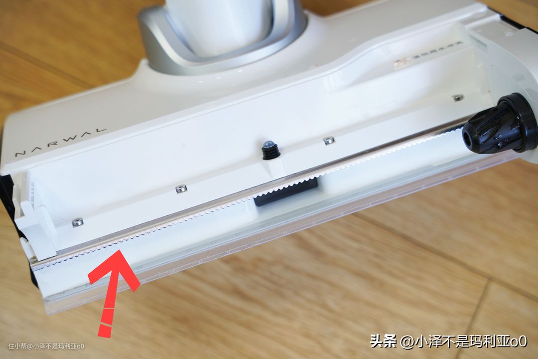 ▼之所以防缠绕效果更加出色,是因为S1的吸口处配备了一道金属锯齿刮条,滚刷高速旋转时,刮条能够切割头发,减少缠绕,在清理一些黏腻的垃圾时,刮条也能起到很好的剥离效果,让滚刷保持清洁。