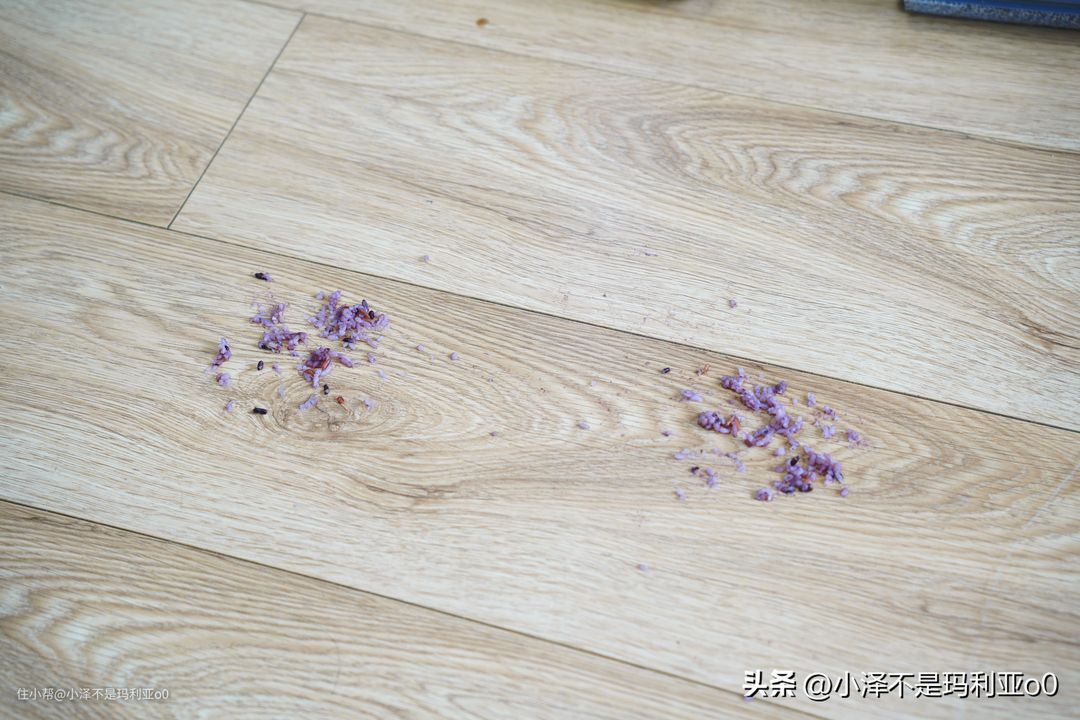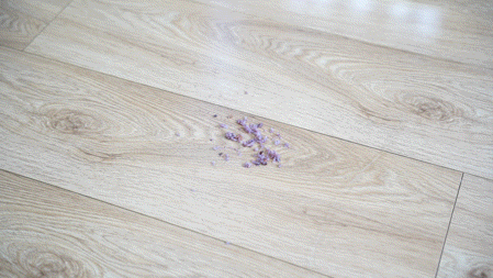 ▼而添可这边前前后后用了三十多次才把污渍清理干净,耗时1分14秒。使用添可清洁的时候依然让我觉得它的滚刷通过的确有点太快了,滚刷与地板结束后几乎一扫而过,虽然比较省力,但也减少了与地板之间的摩擦,因此在清理这种顽固污渍时就需要花费更多时间。