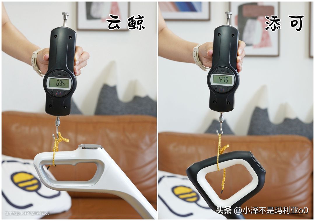 ▼我觉得云鲸通过降低机身重心来改善使用体验,这个方向是对的,通过拉力计测试也可以看出,使用云鲸S1拖地时手臂承担的压力要比添可这款更小,虽然带来的不足可能是无法像添可那样只是弯腰就能拆卸净水箱,但在使用体验方面的提升确实非常明显的。