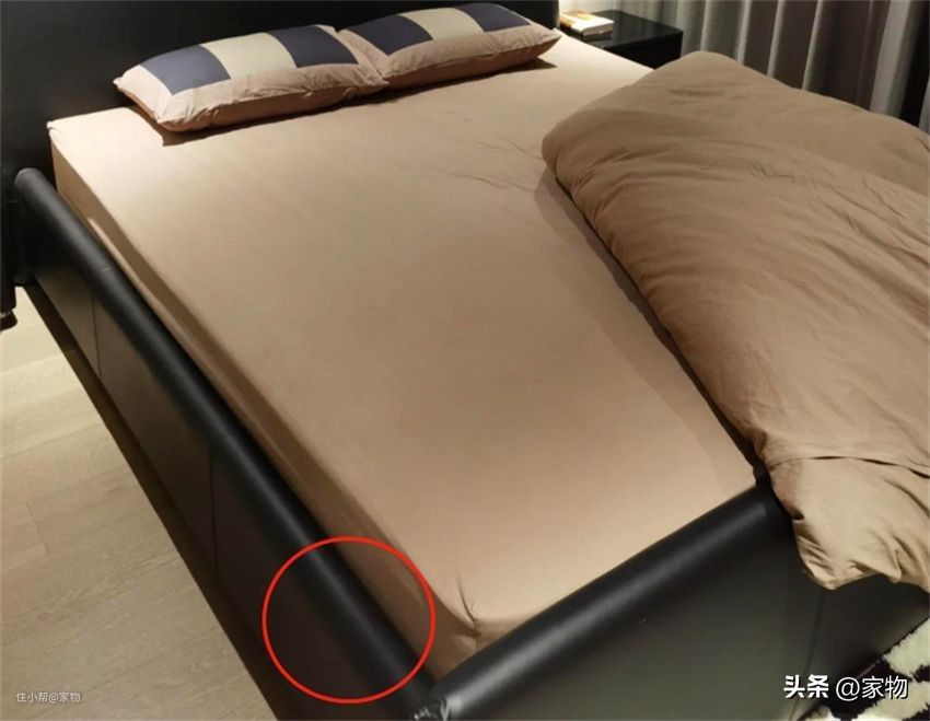 现在不少床为了造型会将床帮延伸出一部分,尽管个性但凸出的床帮很容易磕腿,实用性低,有老人孩子的家庭千万不能要这种造型床。