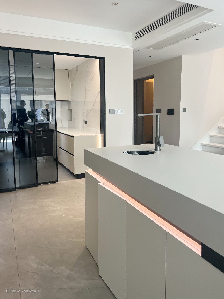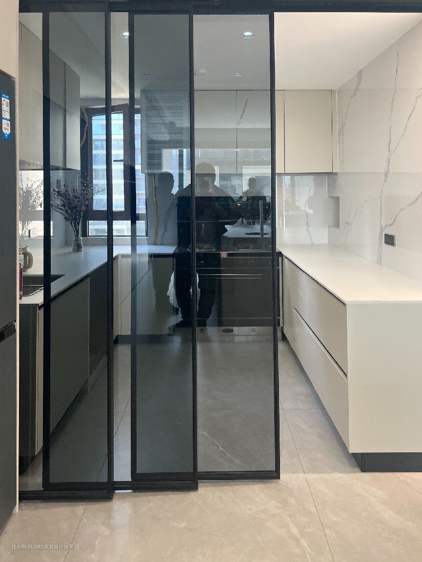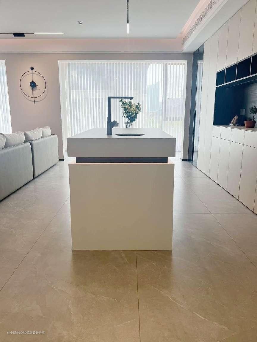 厨房延续了餐厅整洁干净的白色调,将采用不同的材质的白色调,既增加了空间的层次感,又能提升空间的格调!