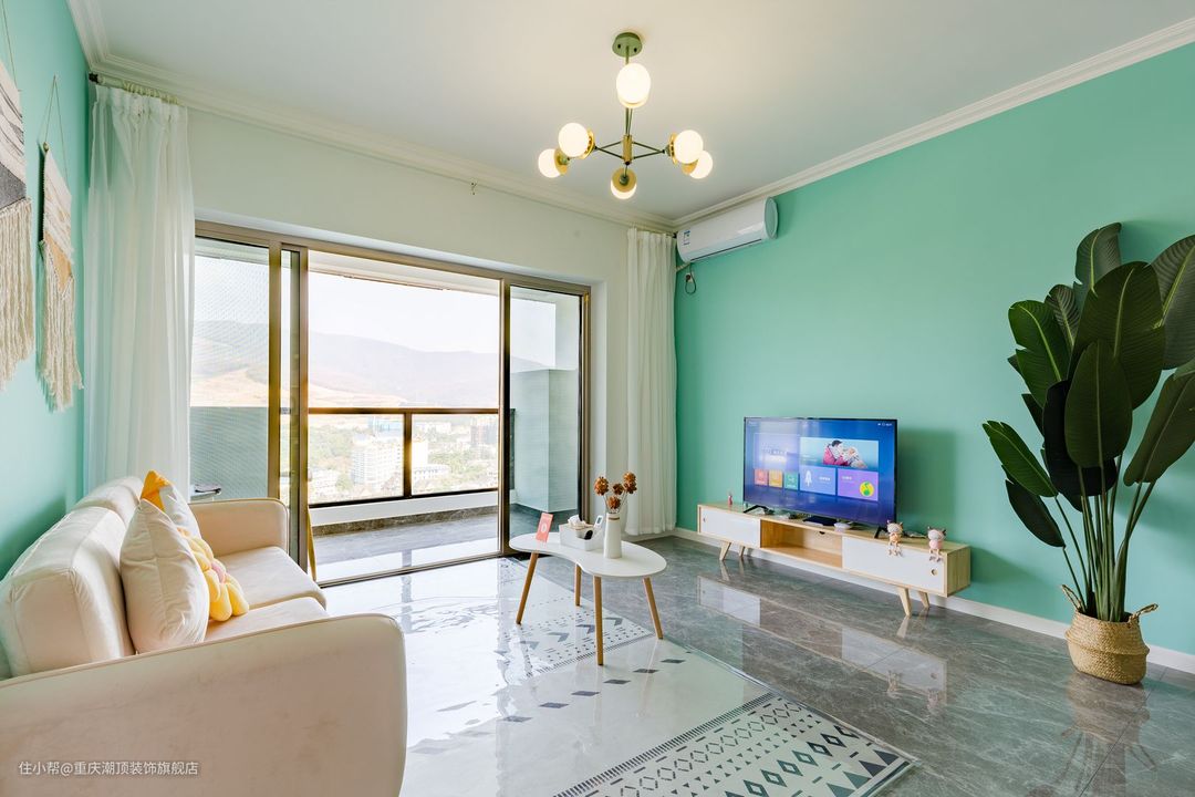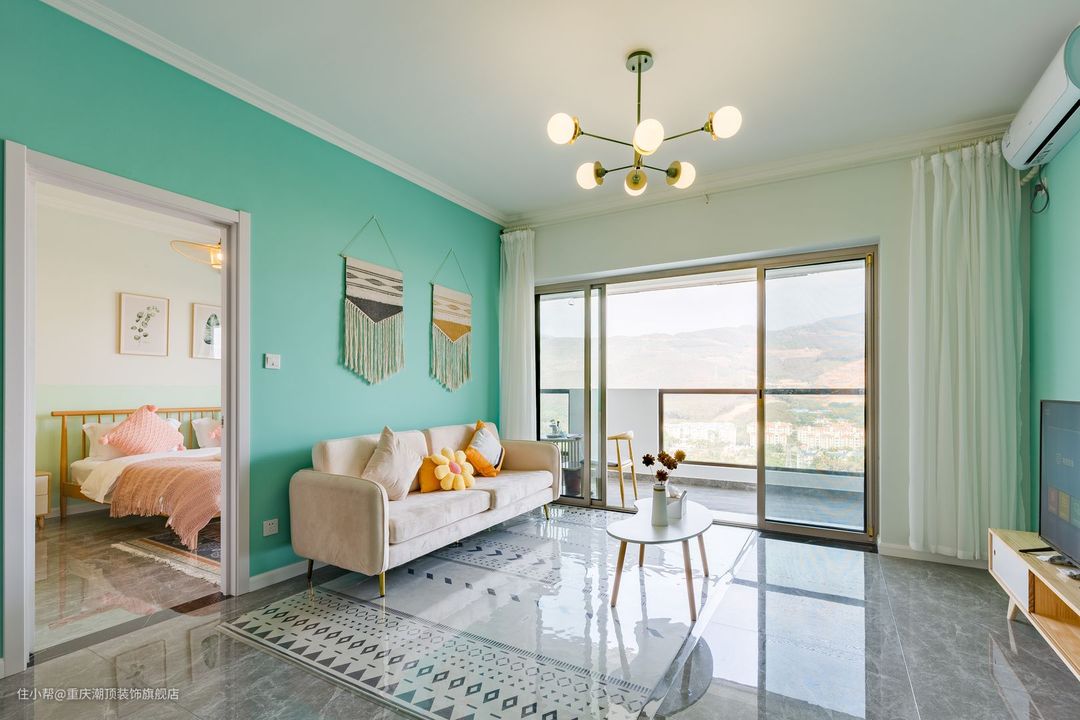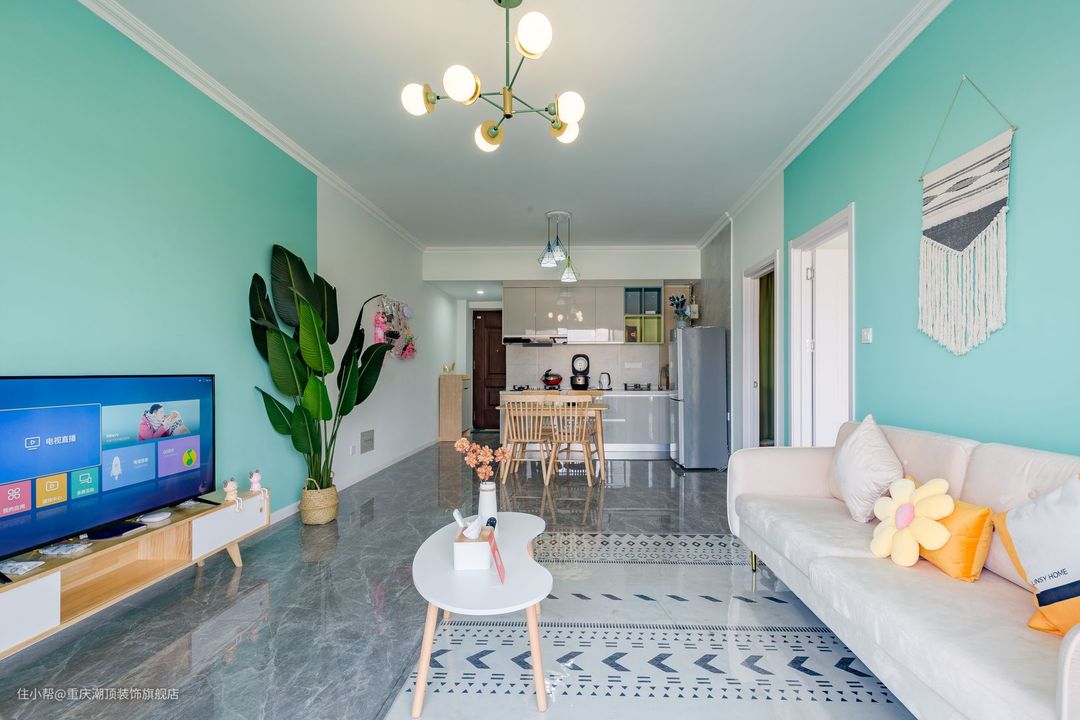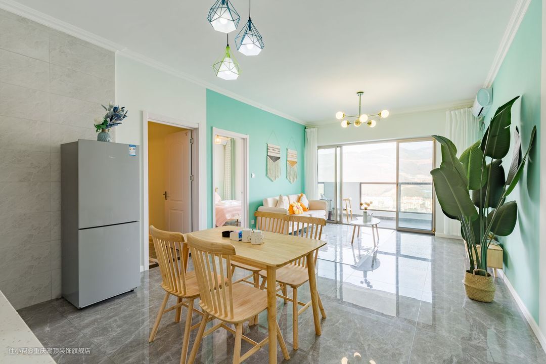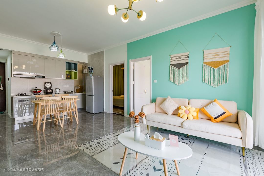 这个用蓝色系为主题打造的新家,让这个空间都充满着温暖的色彩,搭配北欧风格软装家具,让这个精致的小家熠熠生辉,客厅朝南,可以直接享受阳光的沐浴,搭配亮光地砖,视觉效果直接拉满