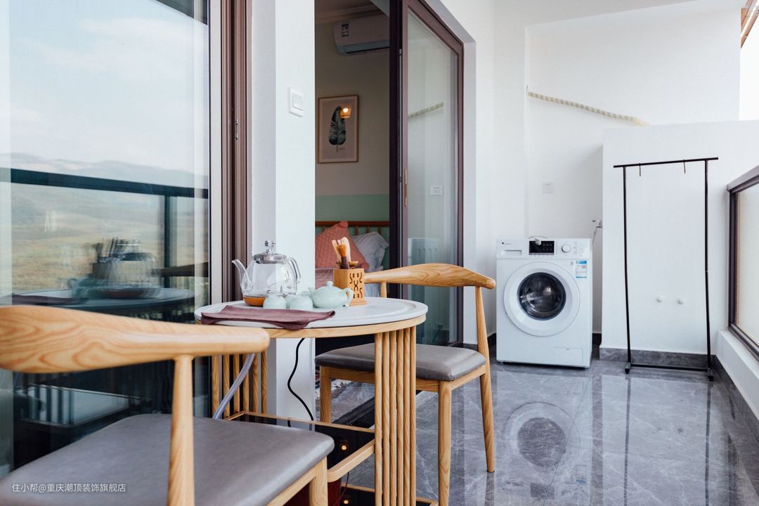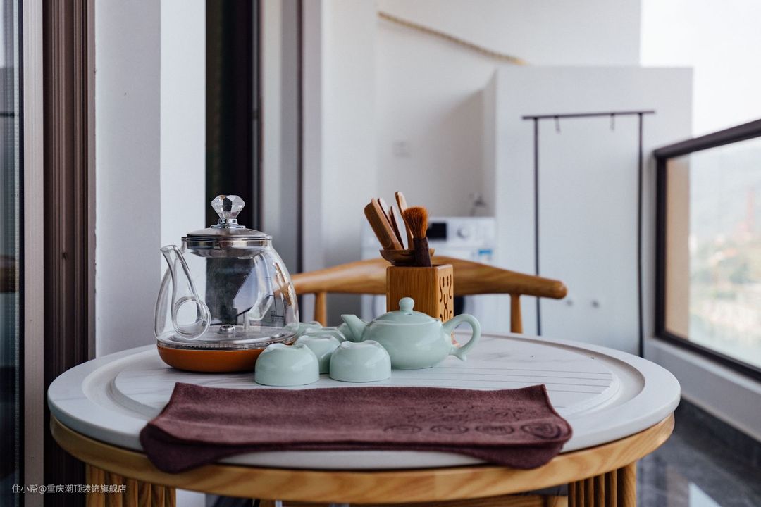 阳台作为生活+休闲之一,搭配茶室,即是生活的柴米油盐,也是诗和远方,浮生半梦,慢慢生活
