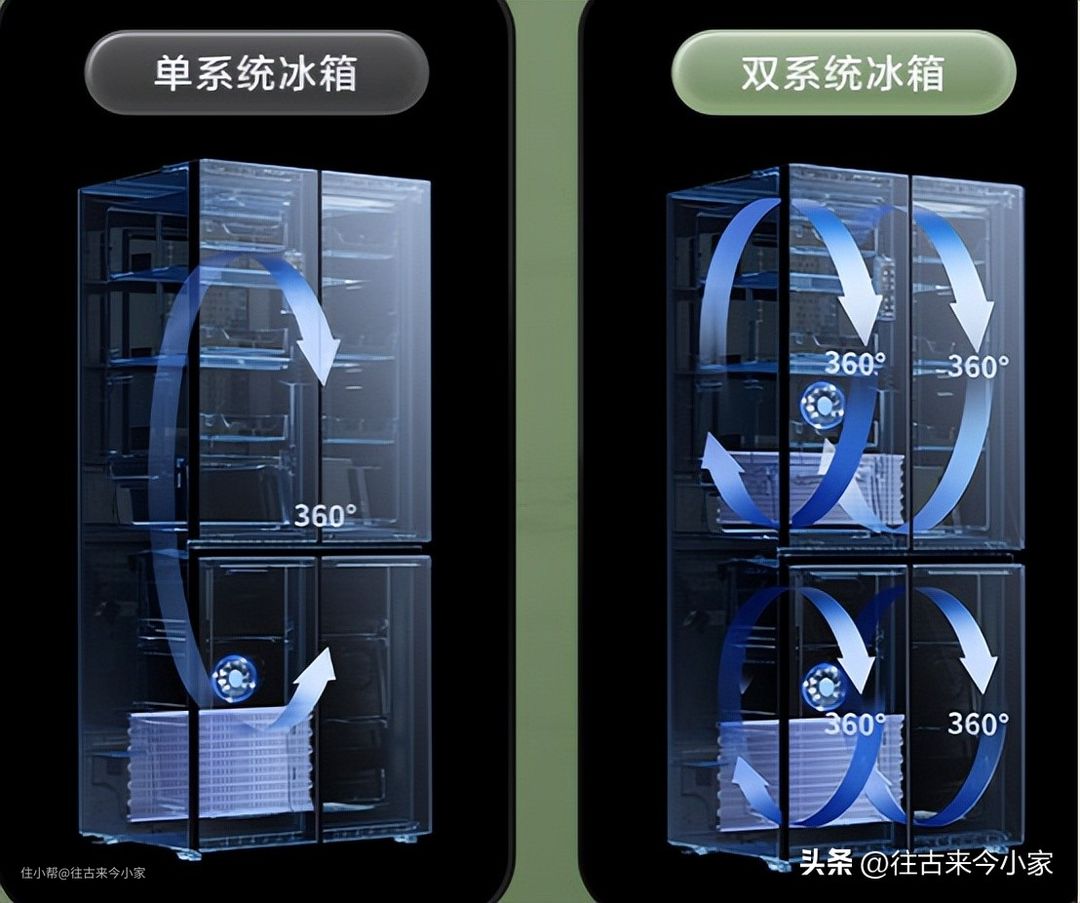 当然,现在冰箱的净味功能其实也很完善,并不是说非要双系统的冰箱。主要看个人预算,双系统的冰箱,多加了蒸发器、风扇等,价格也会相对有所提高。