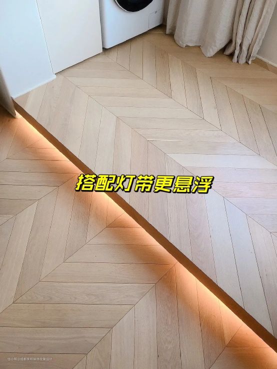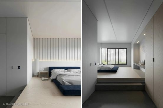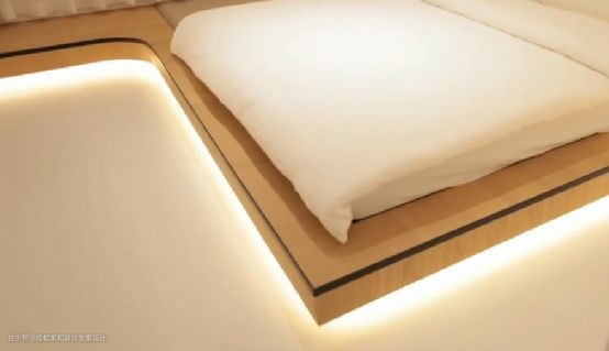 3.还可以做一些小改动,将普通地台变成悬浮地台,加上灯带之后既有氛围感又有层次感。地台下方的灯带还能起到安全提示的作用,避免夜间磕碰,卧室地台建议加装灯带。要加装灯带一定要提前预留电源线以及隐藏好变压器。
