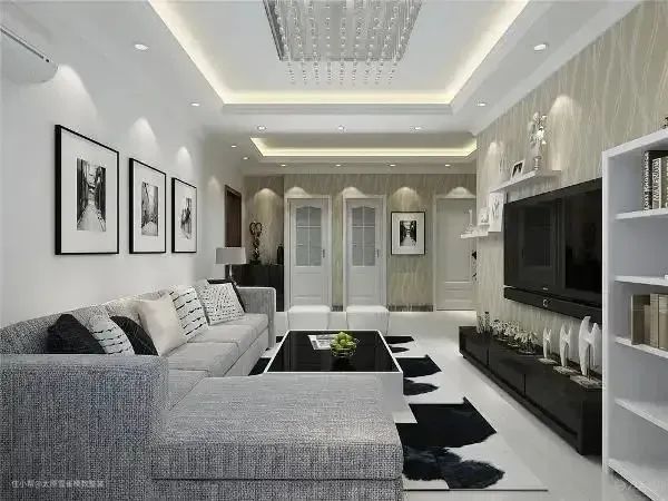 回字型吊顶就是根据回字形的几何形态,做一圈较宽的外轮廓,内部留有空心结构,凸显空间的层次感,同时内嵌灯具,增强客厅的氛围感,也能起到隔音的作用。