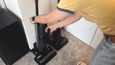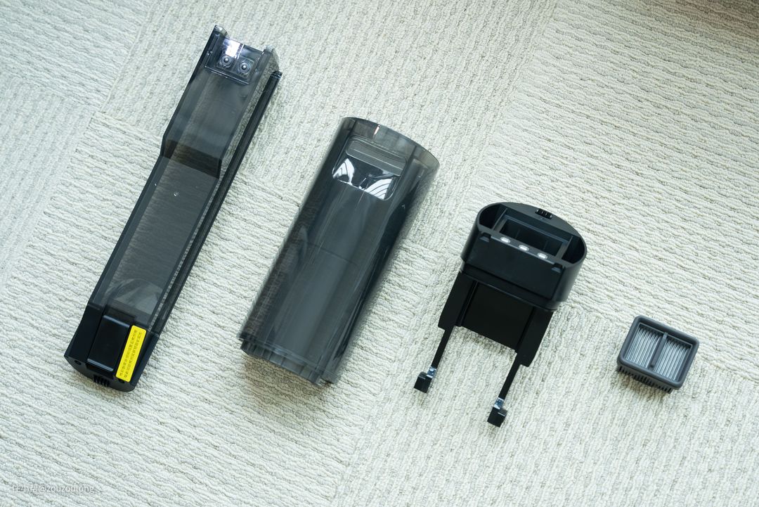 吸尘器的尘盒因为二合一的关系,尘盒的开合结构不能像普通吸尘器那样一键打开倾倒,会相对麻烦一点,这就是前面提到的多合一需要面对和接受的。