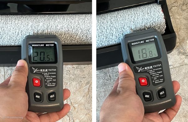 可以看到了只需要30分钟的快速烘干,整个滚刷的湿度都是0%,干净透爽。