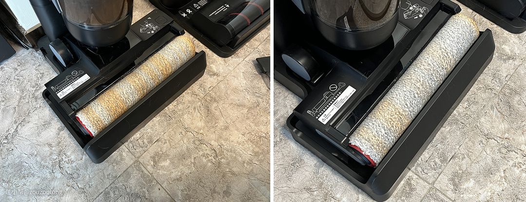 追觅M13 Beta在维护方面做得还是不错的,滚刷自清洁和烘干都支持双向正反转,并且烘干时长只需要30分钟。 虽然我使用的这个酱附着力非常强,后面手搓都很难彻底清洗干净,所以M13 Beta虽然没有完全洗到焕然一新,但这样的自清洁效果也已经让我比较满意了,日常使用很少会像我这样极端测试,所以自清洁方面无需担心。