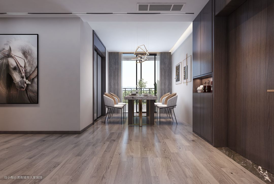 餐厅在原木色地板的基础上,墙面刷白,挂放两幅背景装饰挂画,尽显中式的飘逸悠然,为空间带来一丝温存于高雅之感。