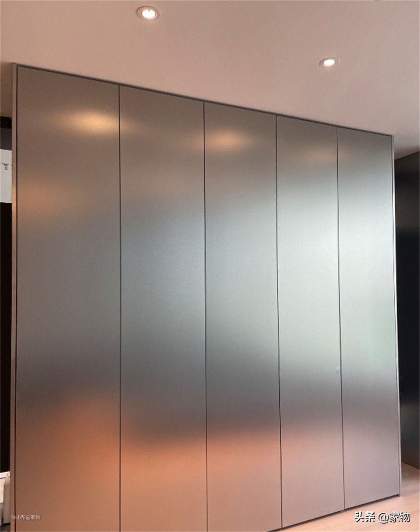 如今不锈钢衣柜在表面覆膜,色彩多样按需选,改变了以往冰冷单调的色彩,提高柜体颜值与质感。而且不锈钢质地硬,做一门到顶柜完全OK,无需担心柜门变形。