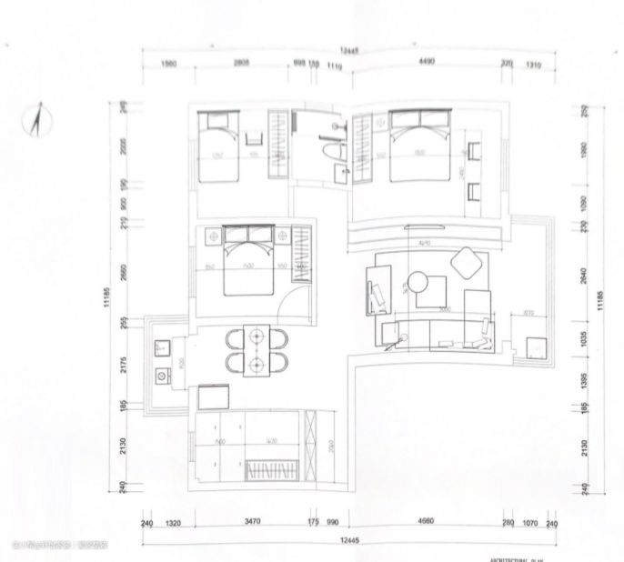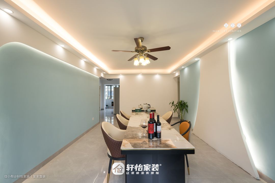 调整空间结构布局是跟屋主讨论过,所以就牺牲掉餐厅的空间给这个小房间让路,需要留出一定空间给家里长辈摆放物品,所以右侧窗台留出部分置物的余地,由于户型原始结构在顶部凸出部分下方留出空间用来存放闲置物品,主灯采用环形灯,让空间整体氛围更加温馨和简约。