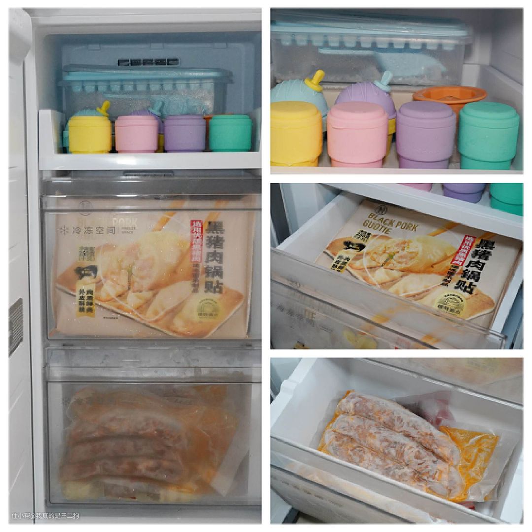 下层左侧为冷冻室,容量为66L。结构包括两组抽屉和一组托盘。托盘拿取物品相对方便,适合拿取频次高的物品,我的习惯是用来放置冰格和冰球。两组抽屉的话可以根据不同食材进行存放,比如一个存放速冻袋装食品、一个存放腊肉制品,大家根据自己需求处理就好。
