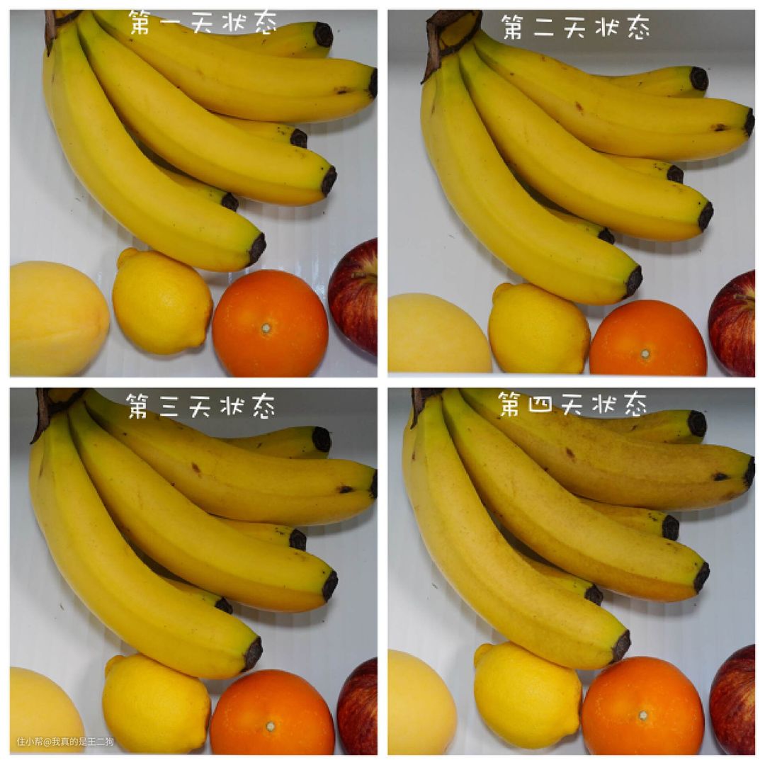香蕉是属于很容易变坏的水果,连续观察放置在鲜活保湿舱的香蕉外皮,经过3天的变化都不大,基本上第4天开始才有明显的外皮发黑,整个保鲜效果还是比较不错的。