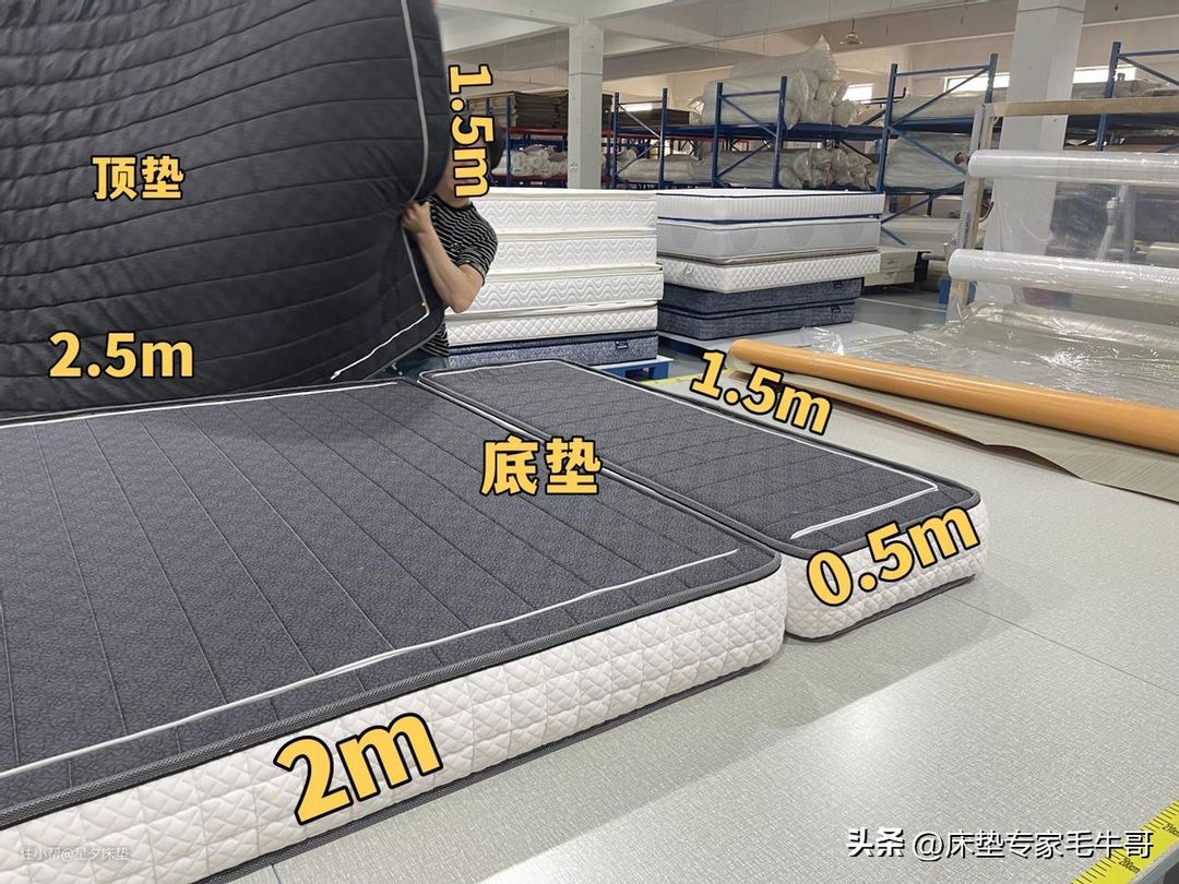 比如我前几天去工厂里就看到师傅们在做一款2.5m长的榻榻米床垫,它都的底垫就是由1.5m*2m和1.5m*0.5m两块床垫拼起来的。这样分成两块,送货的师傅们就比较容易送上门了。