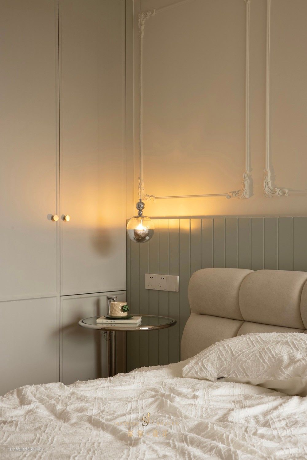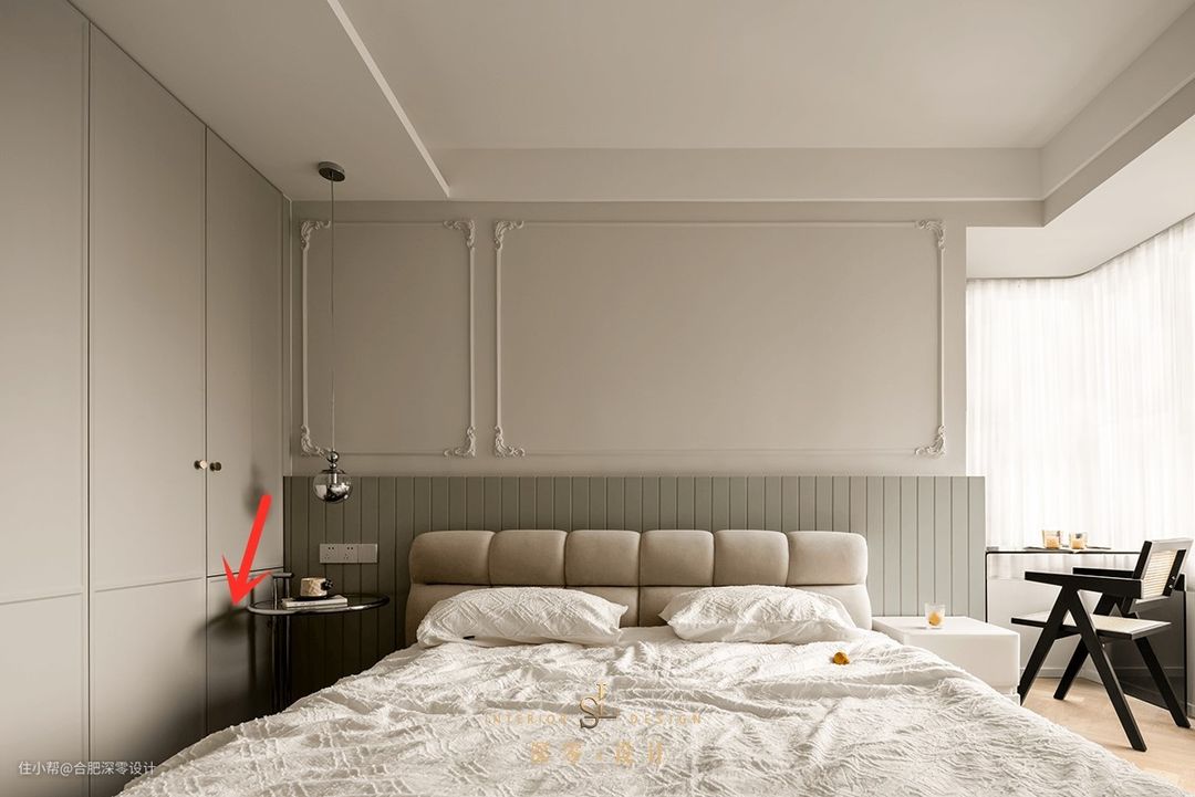 床头一侧隔着过道就是衣柜,放个床头柜都难,尝试这3种解决办法