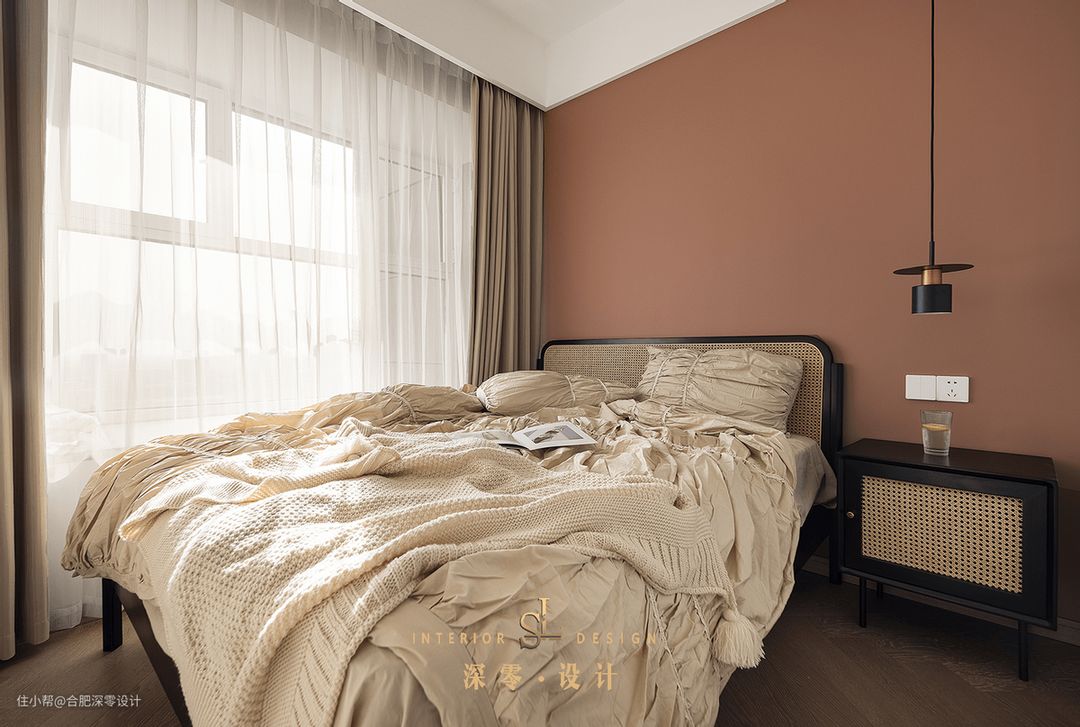 要是不想柜门开关影响走动,就可以通过舍弃床头柜调整床的位置,至少能腾出一部分区域,甚至会通过调整床的位置,避免出现类似的情况。