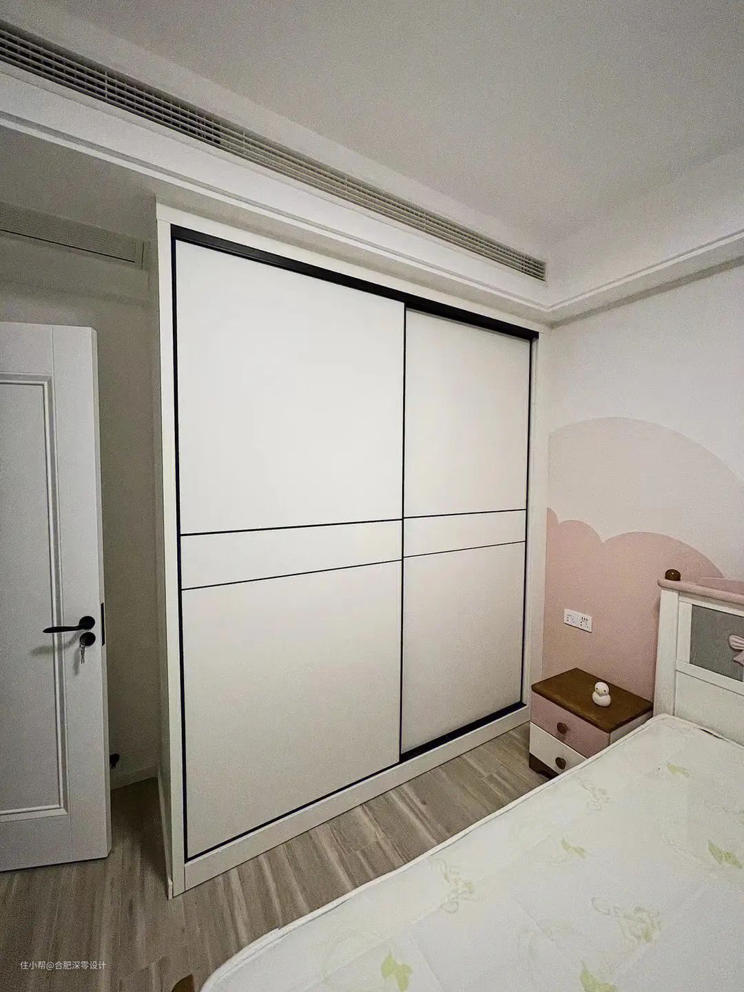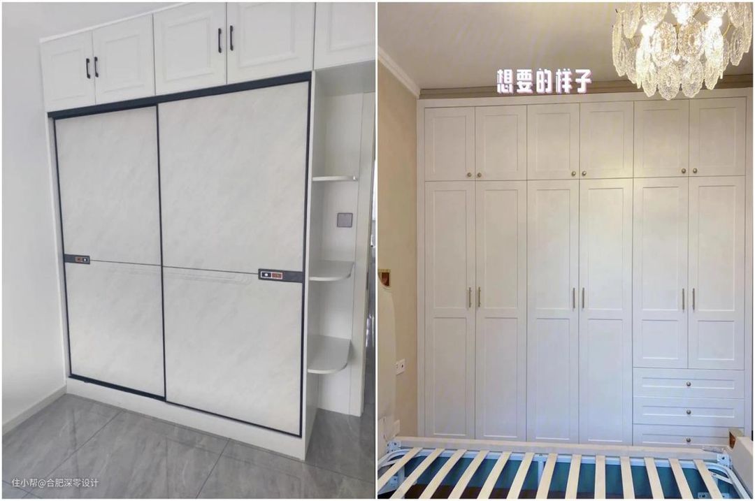 这是咱们自家装修落地的实景,位于合肥-书香门第,一般来说,卧室空间有限,为了避免出现上述问题,咱们大多有以下选择: