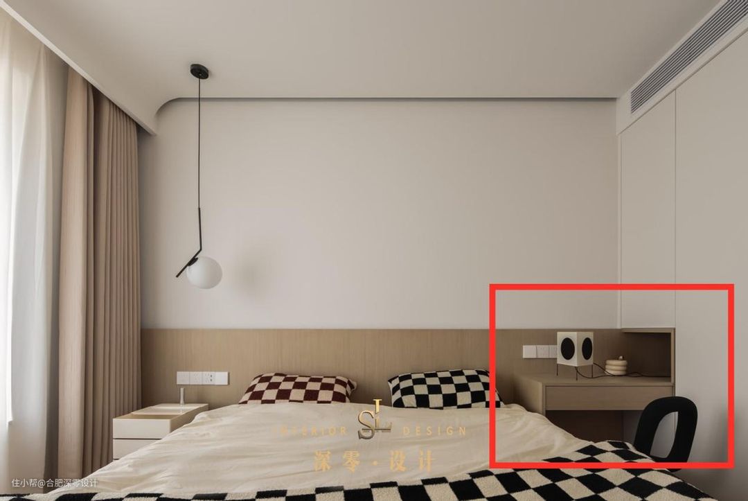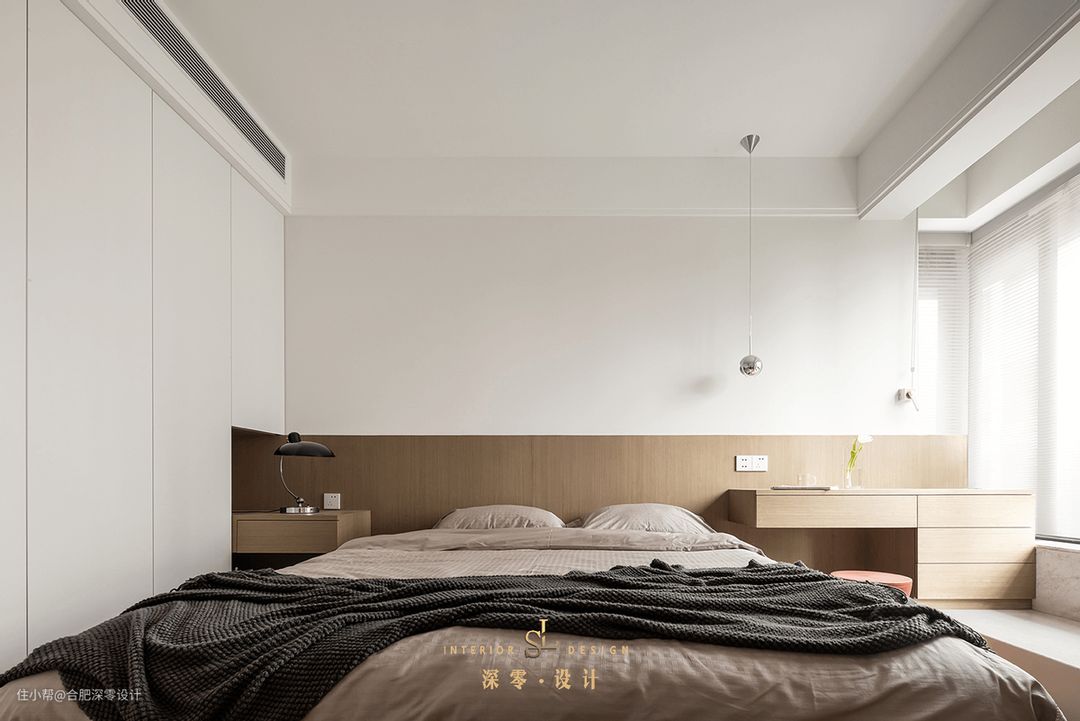 更讲究实用性的,也能靠近将床头柜和衣柜一体化,改成书桌和衣柜一体化,日常兼顾梳妆和办公,妥妥的一地多用。