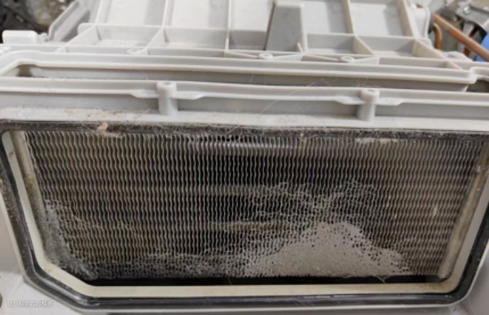两层线屑过滤器,使用不到3个月蒸发器就;两层线屑过滤器+冷凝器自清洁,自清洁清洁效果不佳,只能清理表面的线屑,使用一短时间后蒸发器还是会被污染;