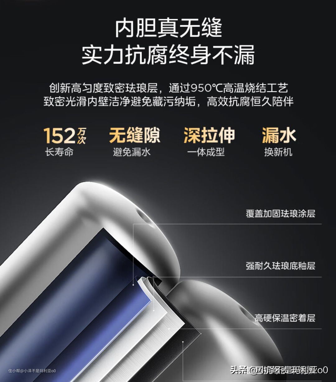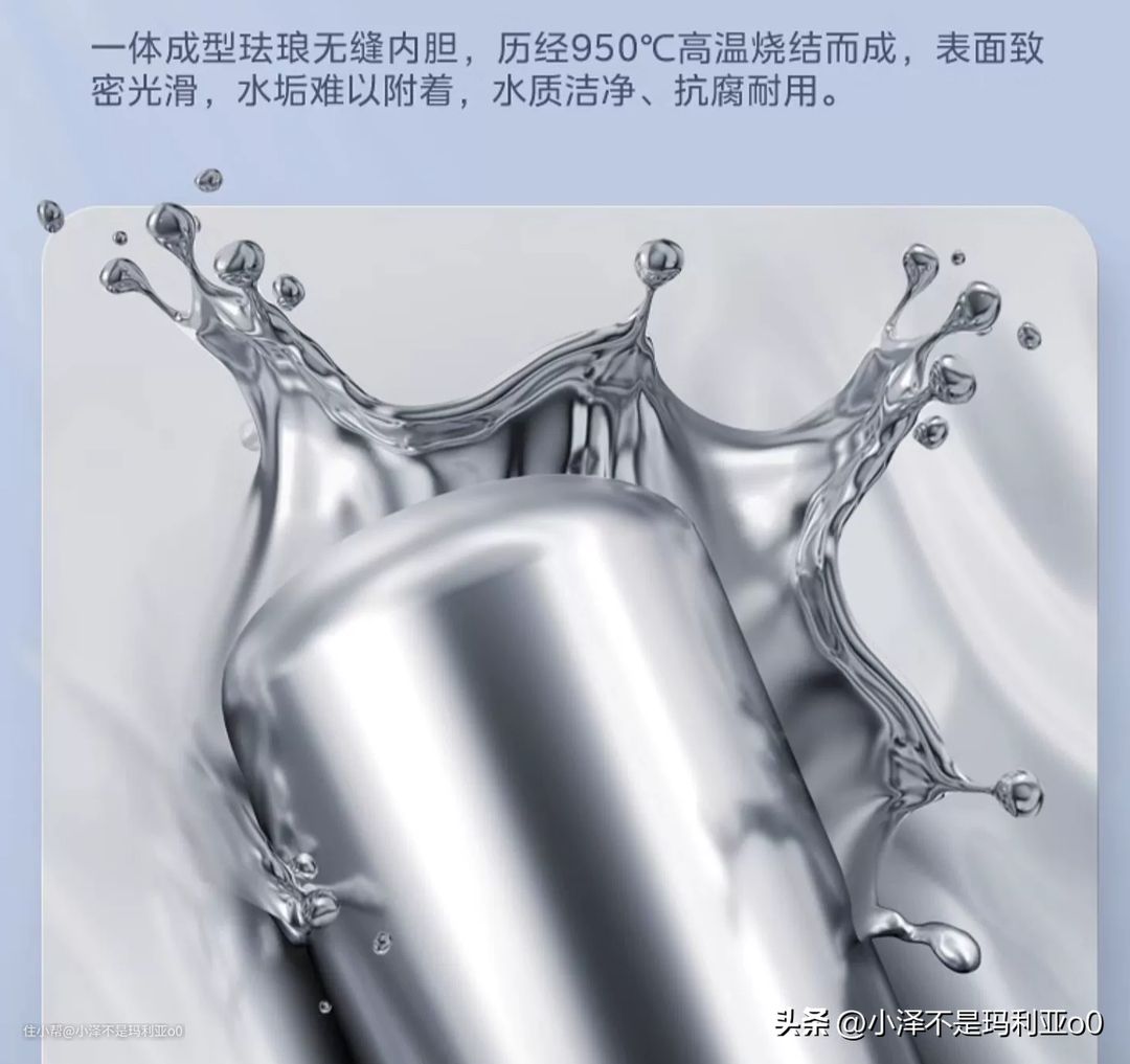 例如,美的使用的是一体成型的珐琅无缝内胆,由整张厚钢板一体成型,表面没有任何缝隙,后期使用不会出现开裂和漏水的问题。再加上950℃高温烧制的珐琅层,内胆内壁光滑洁净,能够很好的避免水垢附着,耐用性更好。
