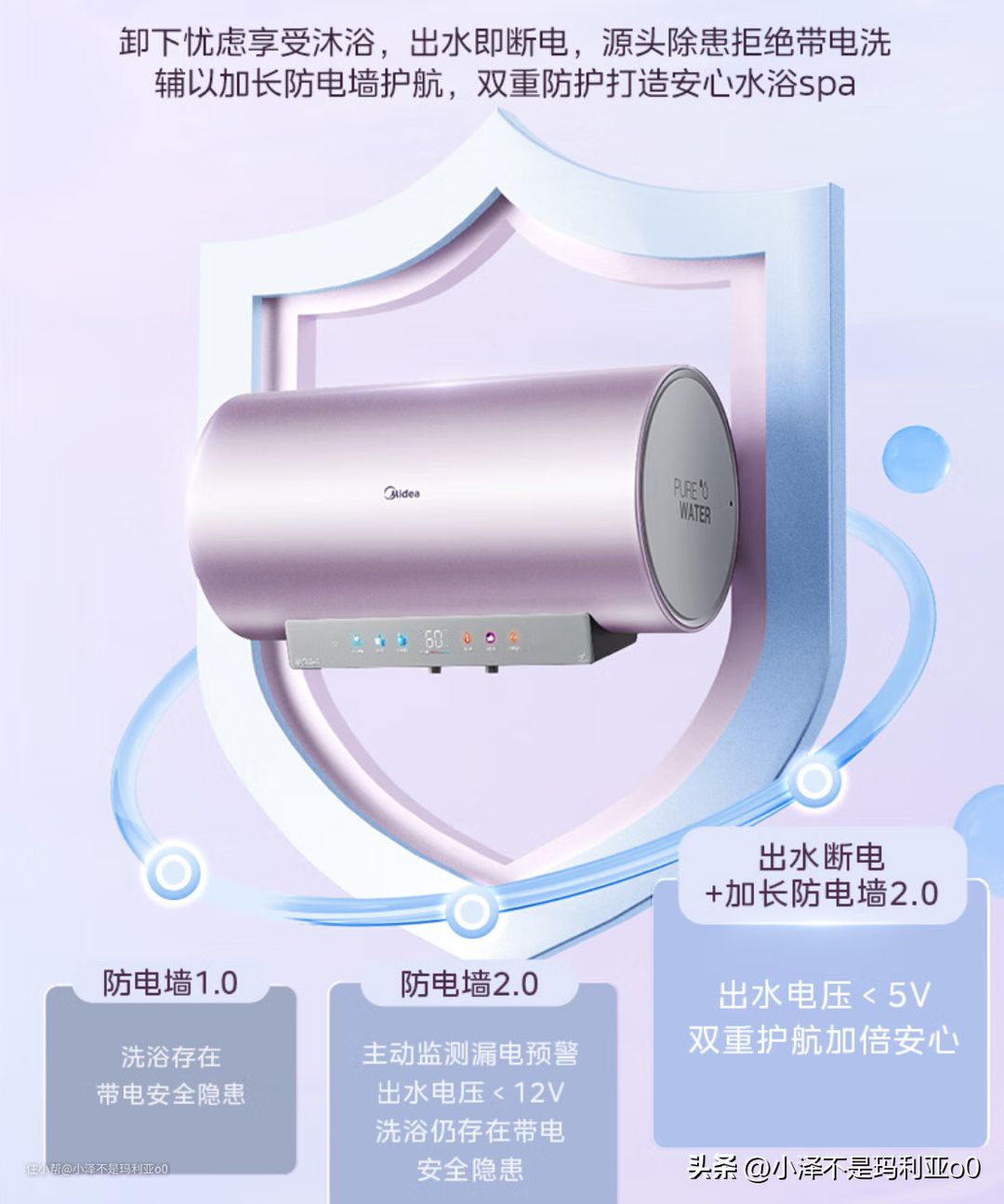 尤其是美的的加长防电墙技术,已经升级到了2.0,能够做到出水水压小于5V,再加上出水即断电的水电分离技术,从源头上隔绝漏电风险,大大提高了使用过程中的安全性。