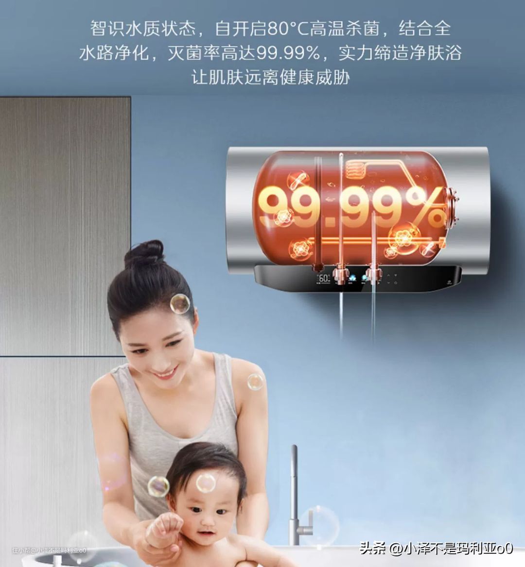 另外,这款热水器还能智能识别水质状态,自动开启80℃高温杀菌功能,除菌率达到了99.99%,非常适合有宝宝的家庭。