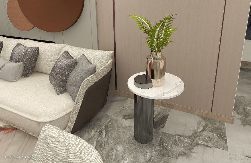 在沙发旁边布置边几,这属于常规设计。