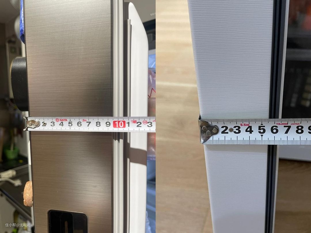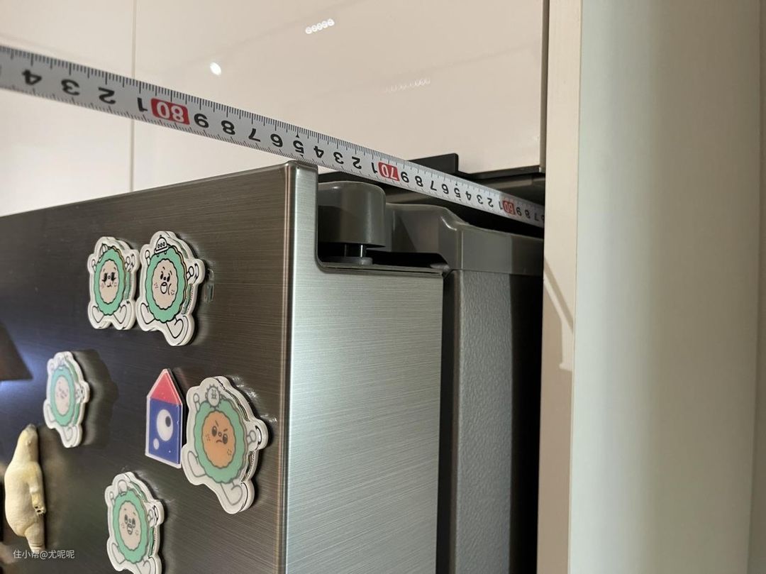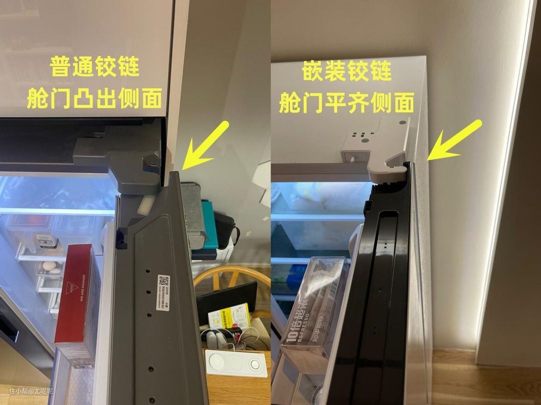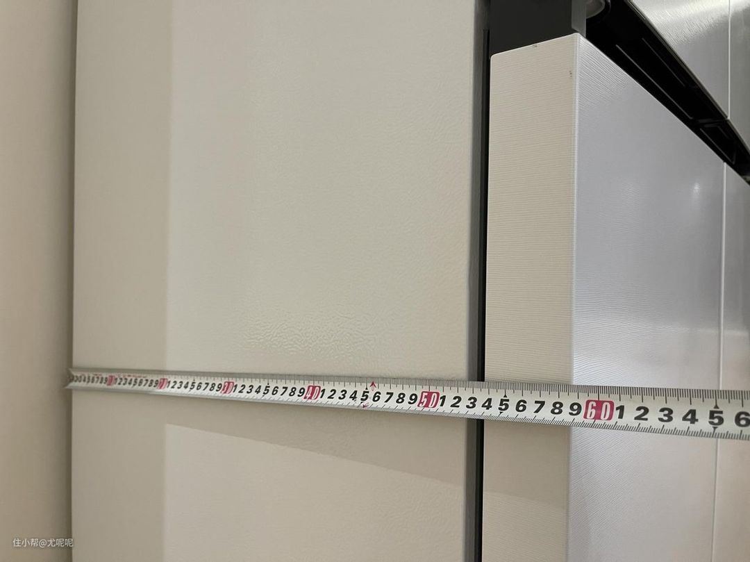 不过单纯做到专业嵌装铰链和底部前置散热只能保证冰箱两侧可以不留缝,但是为了保证冰箱容量够大,大多冰箱的厚度都大于600mm。这样就导致要不冰箱只能凸出柜体,要不就只能加钱制作非标厚度的柜体。