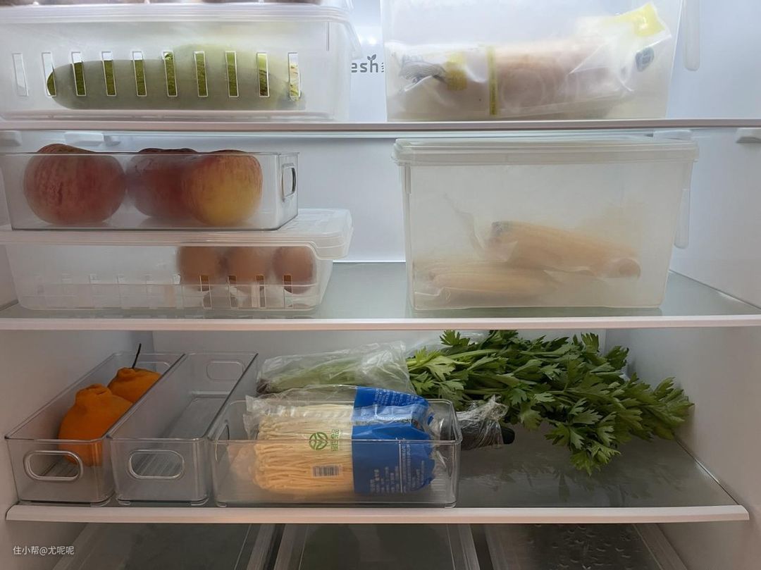 因此类似芹菜、黄瓜等较长的茎类蔬菜也能轻松放下无需折断,而且还可以通过各种尺寸收纳盒的放置来保证整个空间的灵活性。