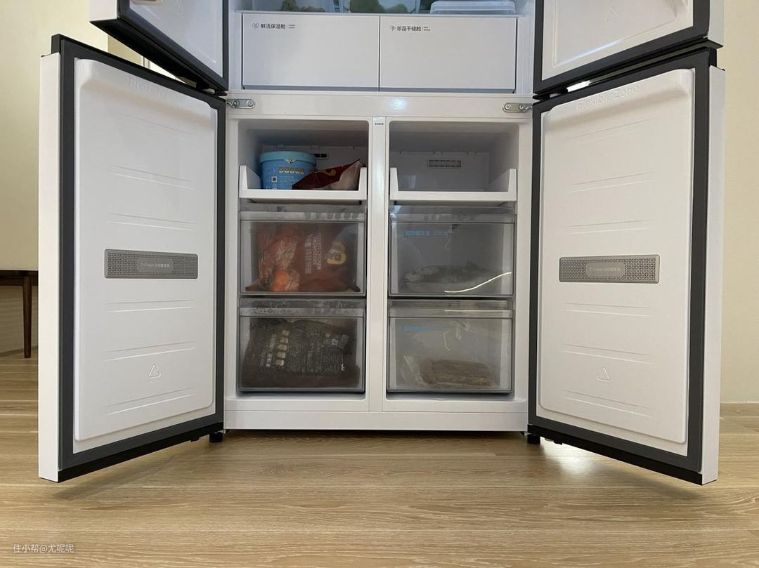 至于冷冻区则分为左右两个分区,每个分区都有两个抽屉,这个放置各类物品都十分的方便,不会堆在一起导致很难找到。