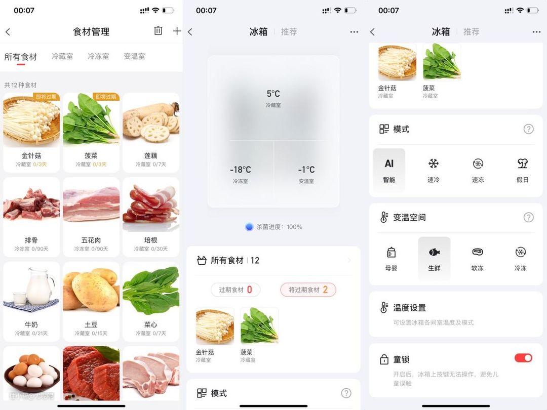 并且不但湿度可调,温度也不再是单调的冷藏和冷冻可选。因为不同食材所需的存储温度并不完全一致,例如三文鱼等食材最好零度左右保存,高级牛排最好-7℃软冷冻保证汁水丰富,而母乳则需要4℃来保证营养不流失。