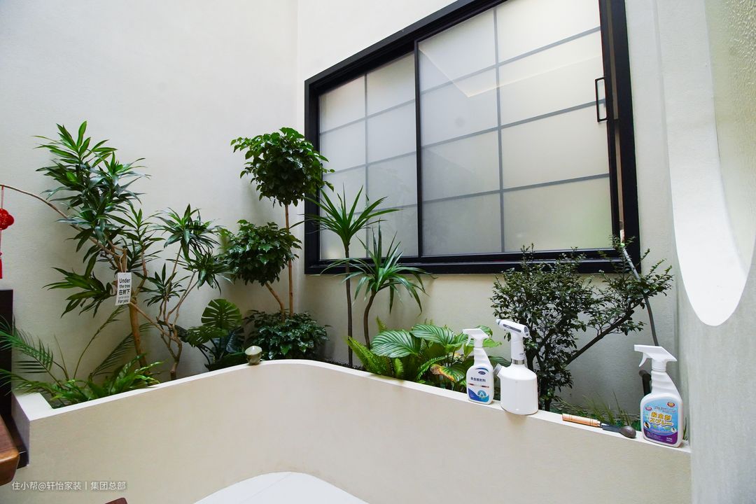 L形设计的花坛,被业主种上了各种绿叶植物,与客厅贯穿的窗口,更是形成一处山水画景观。