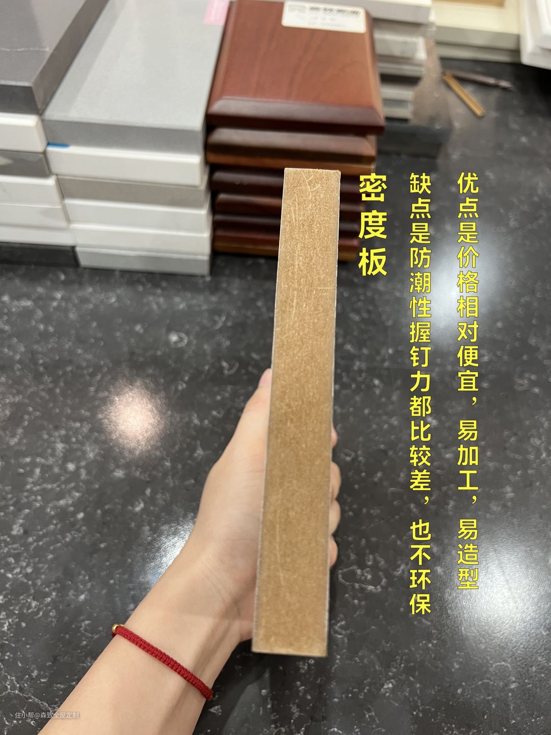1. 密度板材质均匀平稳,易进行涂饰加工,可造型,耐挤压,价格也相对便宜,但防潮性差,也不环保,南方地区不建议大量使用。