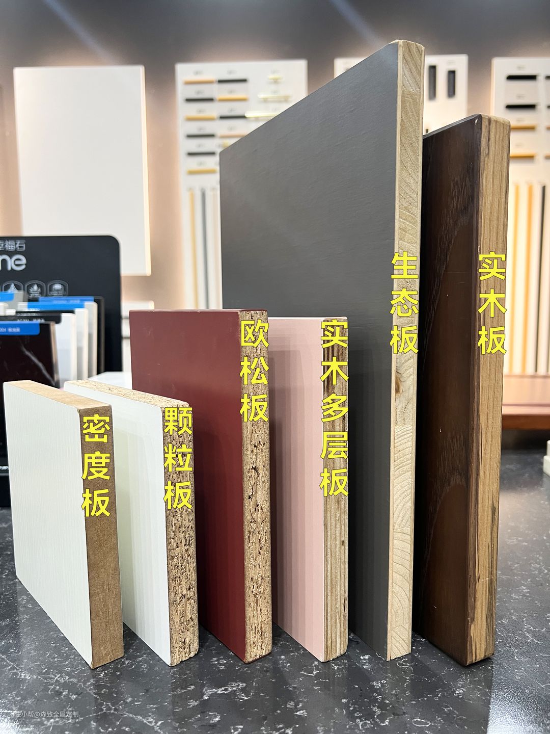 市面上的板材种类很多,最常见的板材有颗粒板、实木多层板、欧松板、密度板、实木板,大芯板等。