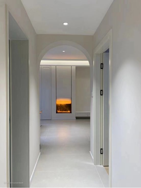 设计师在走廊运用线条穿插在空间中,拱门设计加上简洁的白色作为空间主色调从而细腻晕染空间。整体基调采用白色作为空间主色调,鲜明的简约时尚主题-让空间充满治愈。