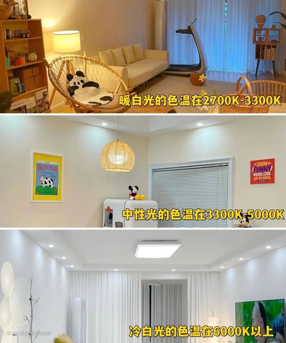 需要注意的是:一个房间固定选择一种色温,不要做太杂以免色温交错造成视觉眩晕。