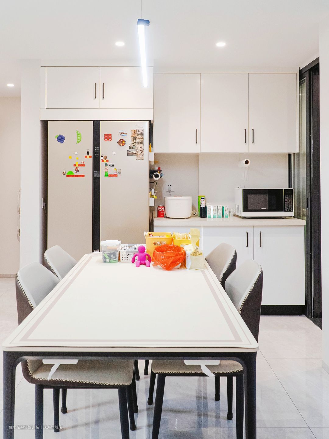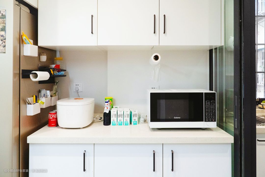 冰箱侧边搭配磁吸收纳件,小物品上墙收纳,台面更容易保持整洁。