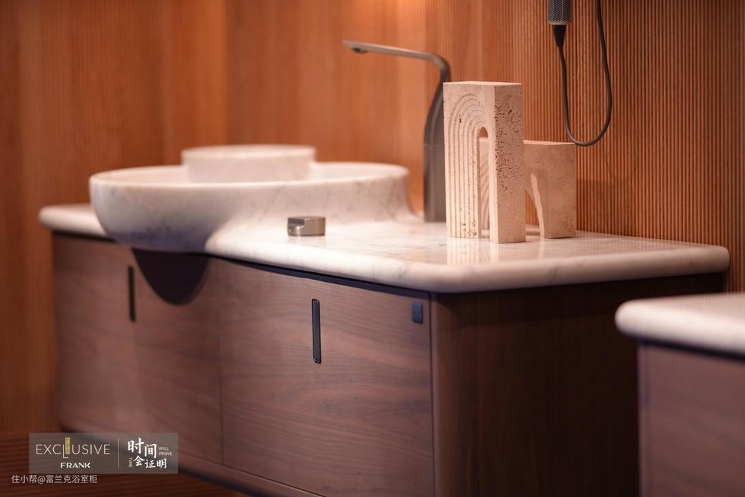 富兰克浴室柜,17年一直坚持单品类深耕,把一个浴室柜单品做深做透。因此,品牌更重视打造完整的产品矩阵,聚焦别墅豪宅私享家的产品定位,通过持续的产品创新,创造与众不同的高定私享。