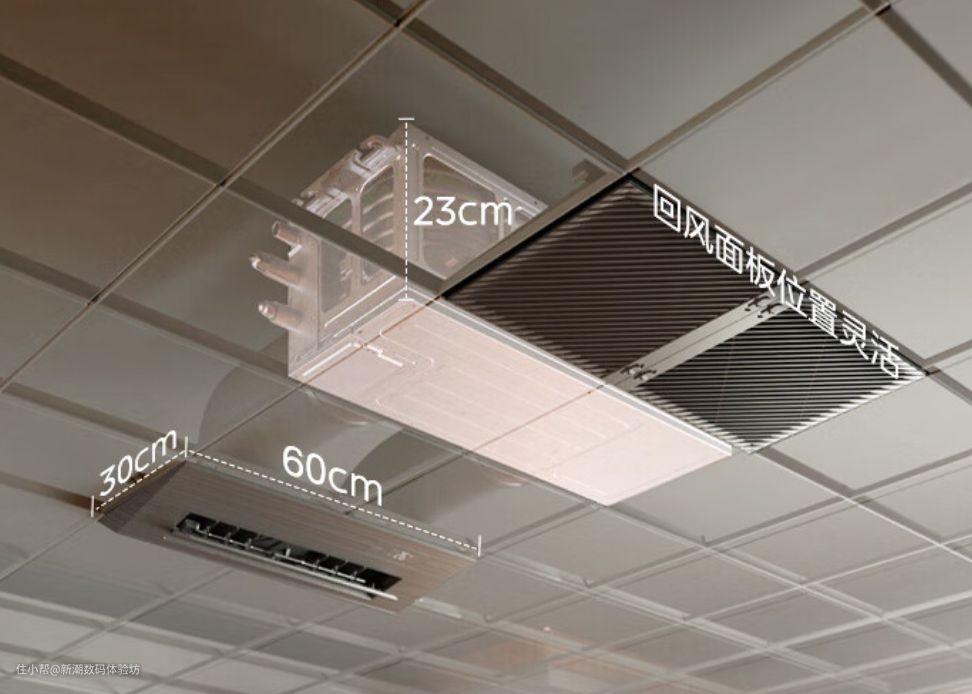 这款美的厨房专用空调拥有三大技术:1.5匹大冷量、整机防油烟、隐藏吊顶式安装。