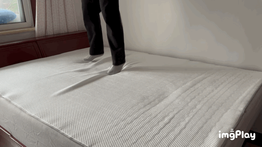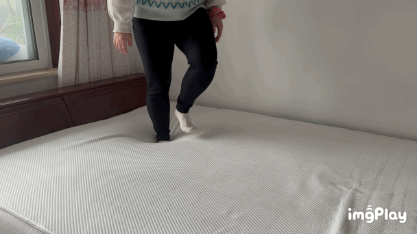 快速在床垫上行走,床垫的恢复几乎是在一瞬间的样子,反弹速度十分快速!而我就像走在云朵上一样,舒适、柔软!