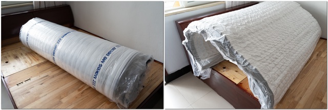 蓝盒子床垫的外包装很有意思!居然可以把那么大的床垫装在这么小的竖型箱子中!这样小巧的盒子在运输及上下楼梯时非常方便!特别对于一些老房子的那种窄小的楼梯搬运十分友好!