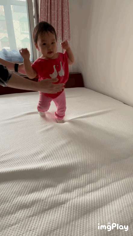 床垫采用独立袋弹簧,在床上砰砰跳跳、快速行走,都感到相当轻松,看我家小宝刚学会走路没多久,就可以轻轻松松在床上穿梭!另外,床垫的静音效果也表现十分优秀,像我这么用力弹跳都没有任何噪音!