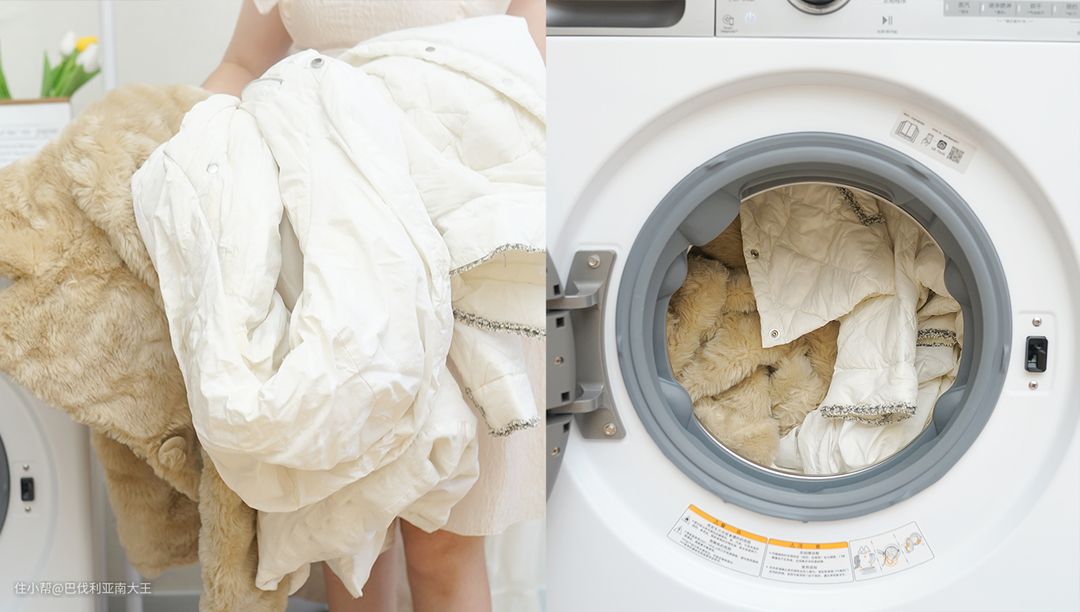 最后把我冬天穿过的三件大羽绒服也洗烘一下,干净后封箱装柜。大容量洗衣机就是好,我这一条长款羽绒服、两条短款羽绒服全都能一次性塞进去。