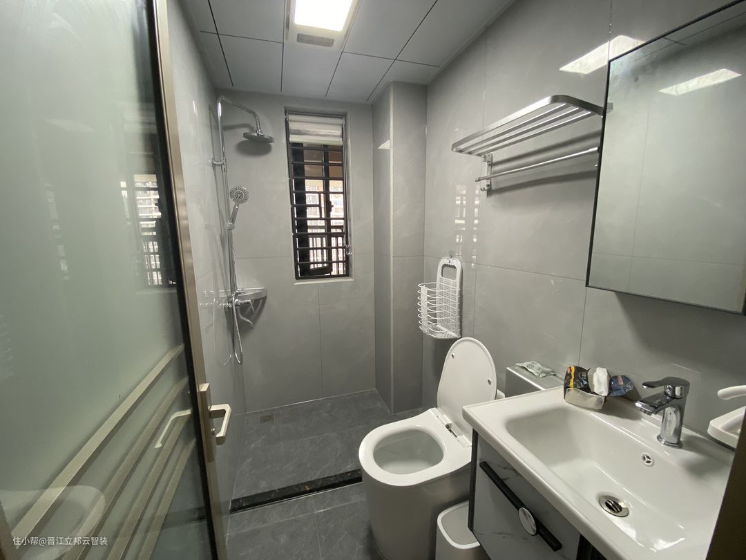 卫生间灰色调瓷砖为主方便后期清洁打理,功能分区明确不显突兀给人干净明亮的效果。