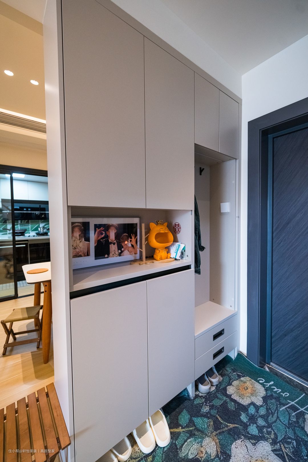 1. 全屋定制到顶的柜体,结合屋主对各部分柜体的功能需求进行设计配置;